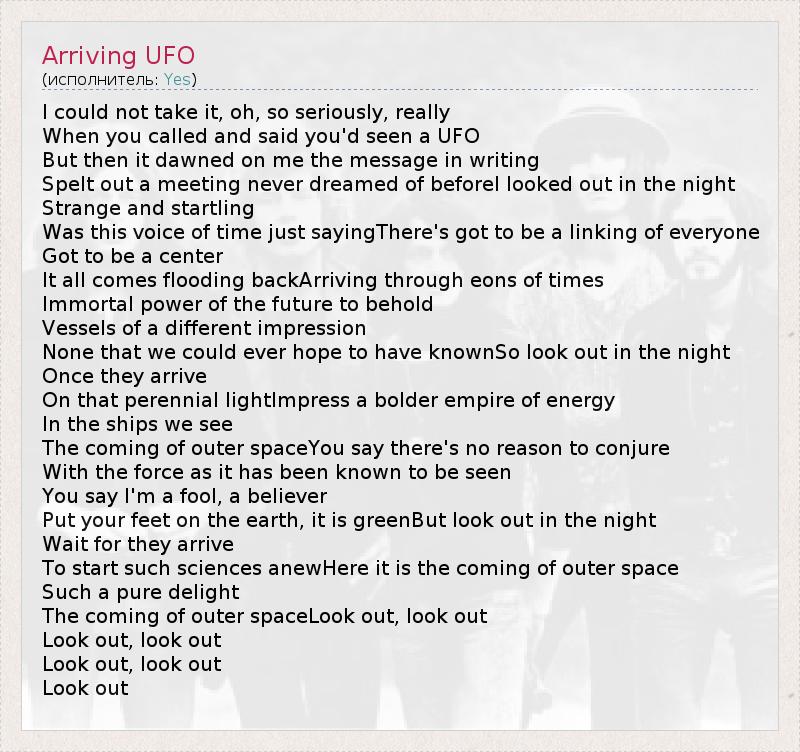 А как ты думаешь, о чем песня "Arriving UFO" ?