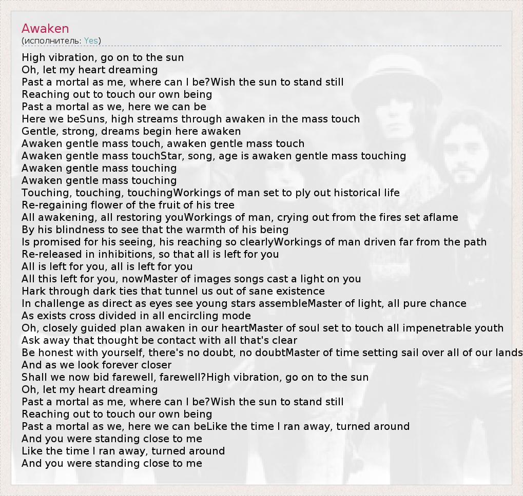 Это интересно:«Yes» — английская рок-группа направления «прогрессивный рок», созданная в Лондоне в 1968 году. Несмотря на множество смен состава, временные распады и постоянные изменения в популярной музыке, эта группа существует уже 40 лет и все еще сохраняет огромное количество своих слушателей по всему миру. Музыка Yes характеризуется резкими динамическими контрастами, расширенной продолжительностью... продолжение