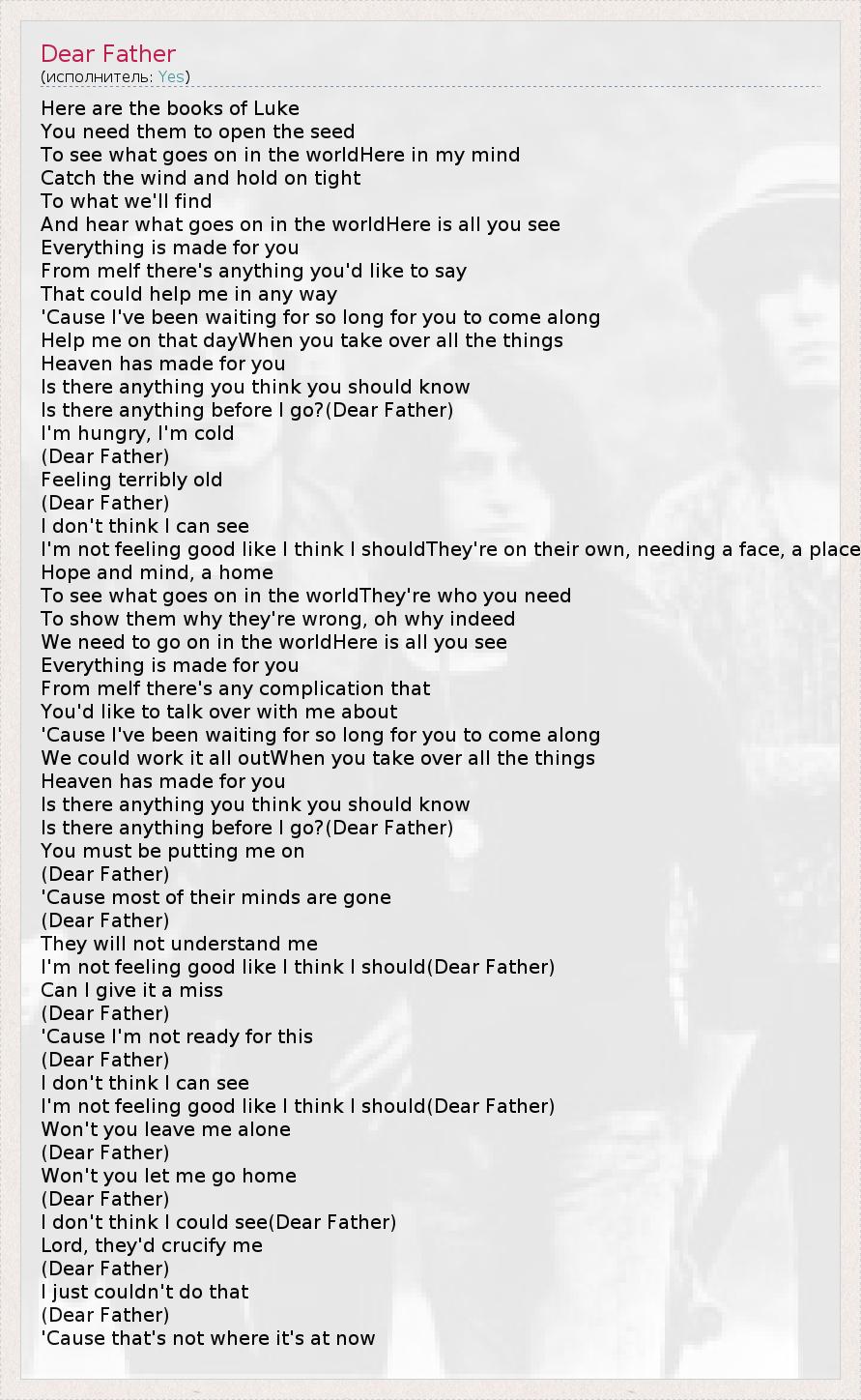 А как ты думаешь, о чем песня "Dear Father" ?