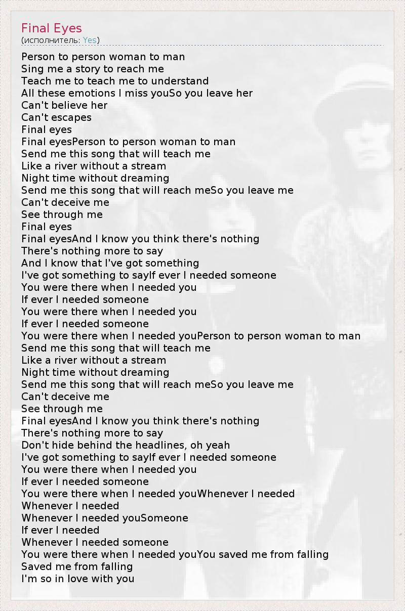 А как ты думаешь, о чем песня "Final Eyes" ?