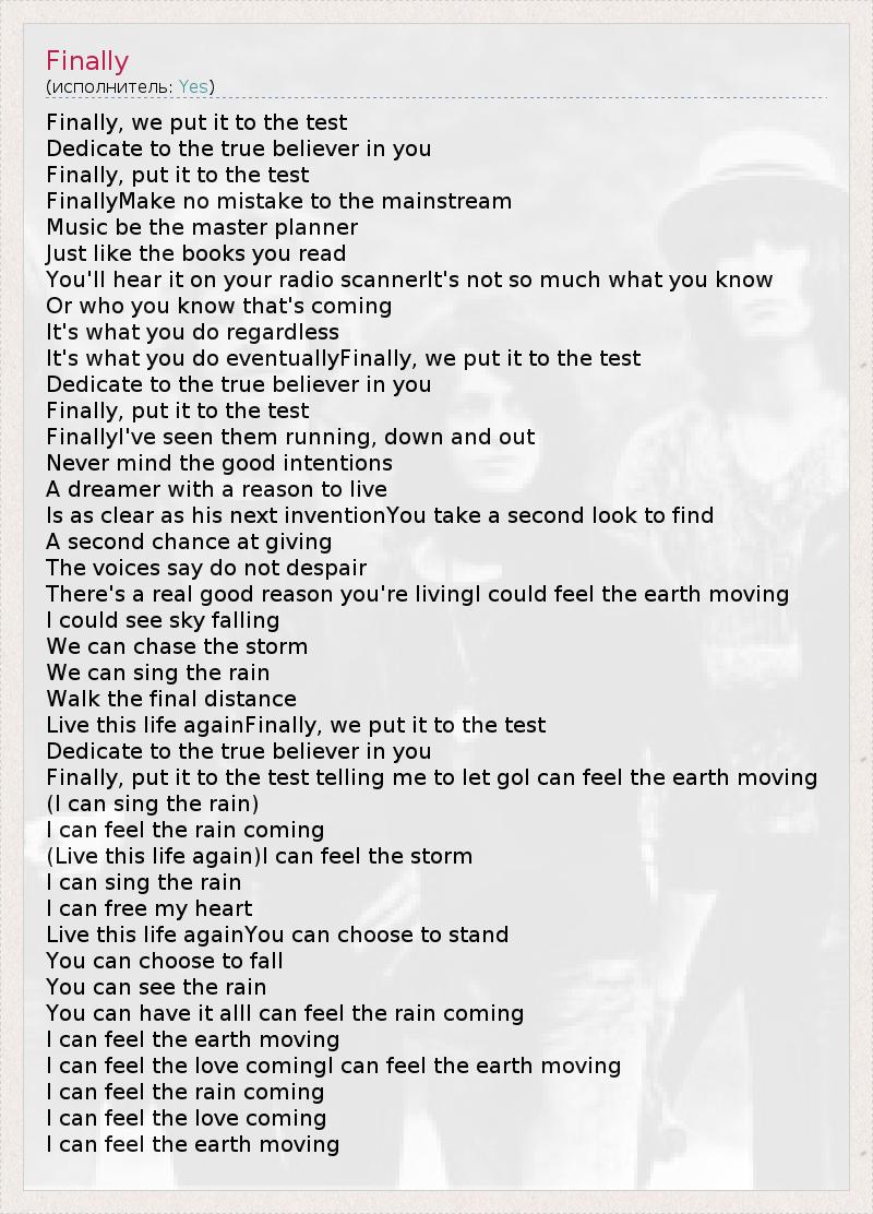 Finally, put it to the test telling me to let goI can feel the earth moving