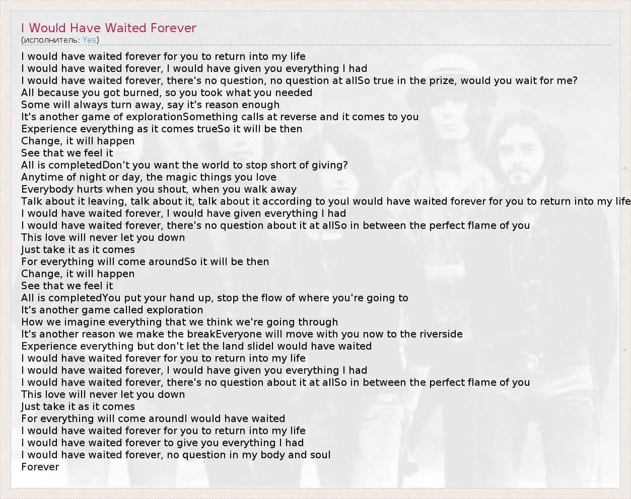 ГлавнаяИсполнителиYesI Would Have Waited Forever