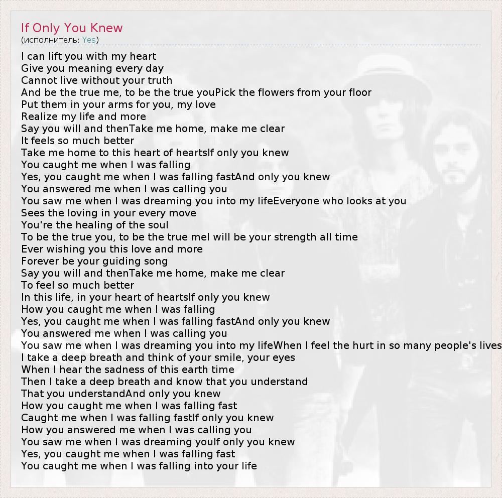 А как ты думаешь, о чем песня "If Only You Knew" ?