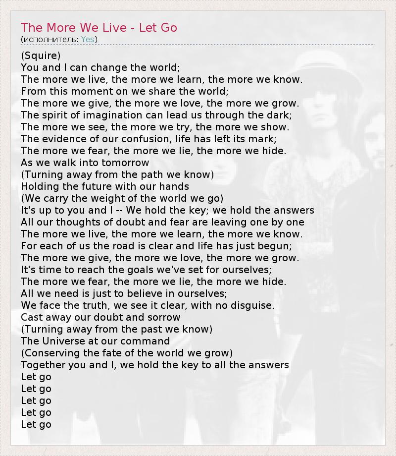 ГлавнаяИсполнителиYesThe More We Live - Let Go