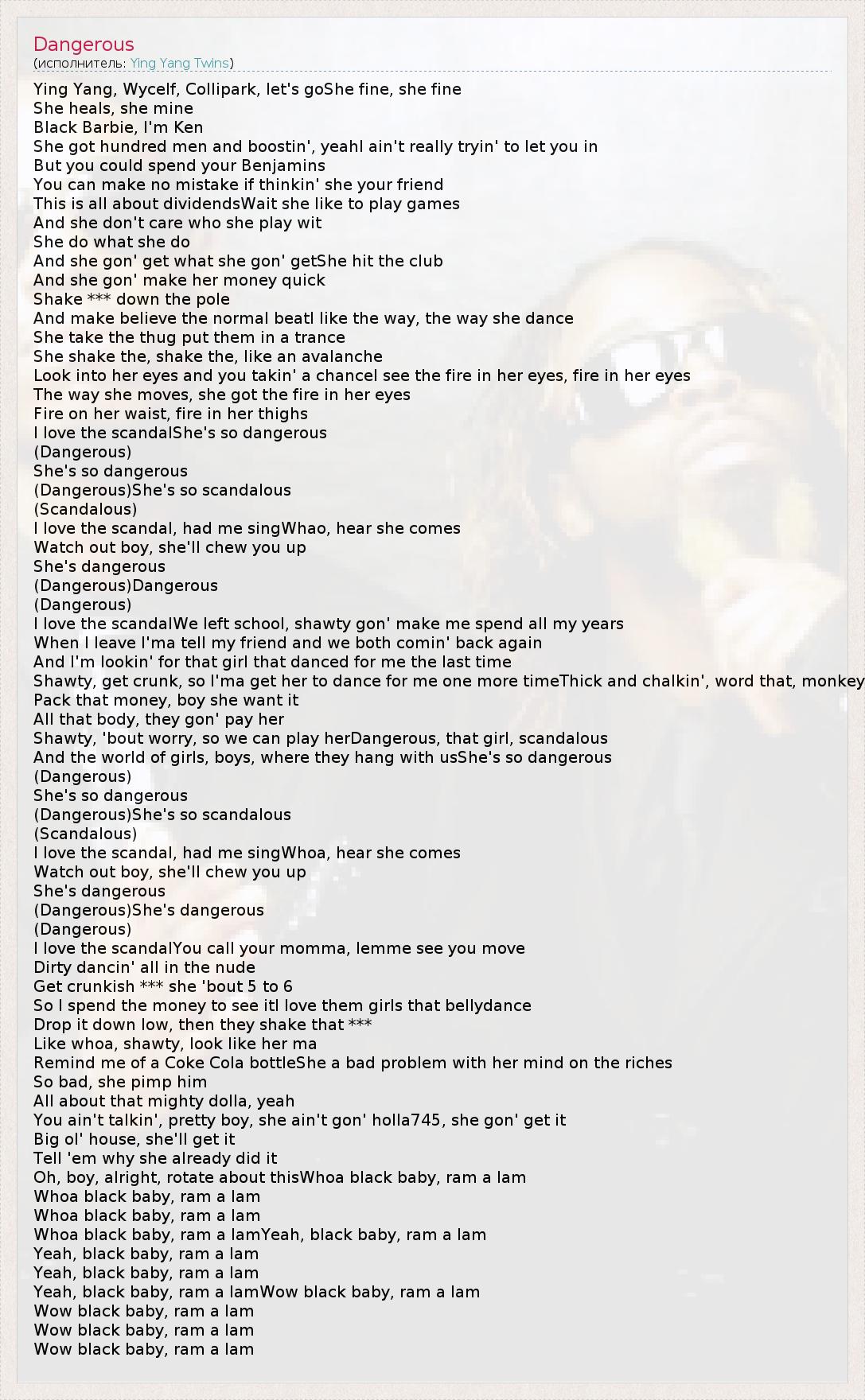 Shawty, 'bout worry, so we can play herDangerous, that girl, scandalous
