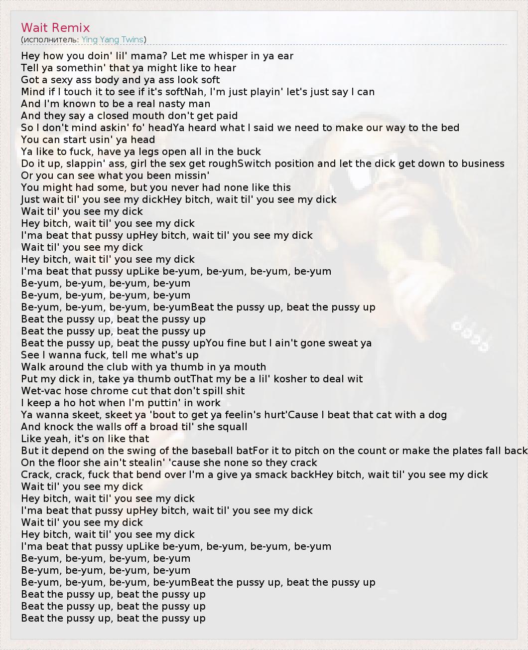 I'ma beat that pussy upHey bitch, wait til' you see my dick