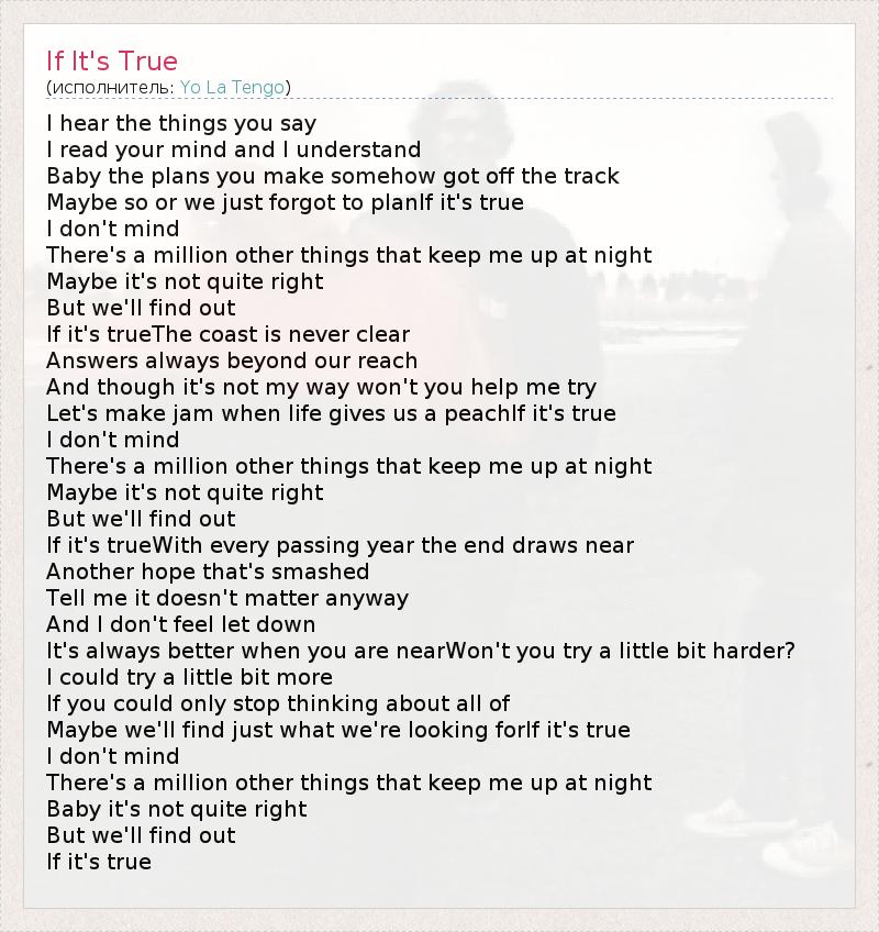 А как ты думаешь, о чем песня "If It's True" ?