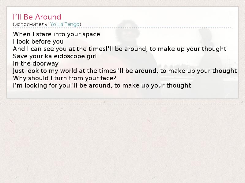 А как ты думаешь, о чем песня "I’ll Be Around" ?