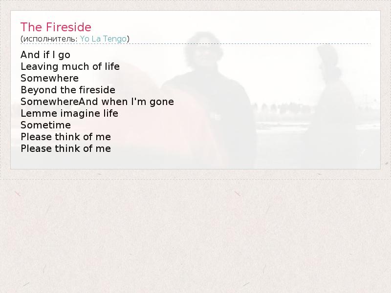 А как ты думаешь, о чем песня "The Fireside" ?