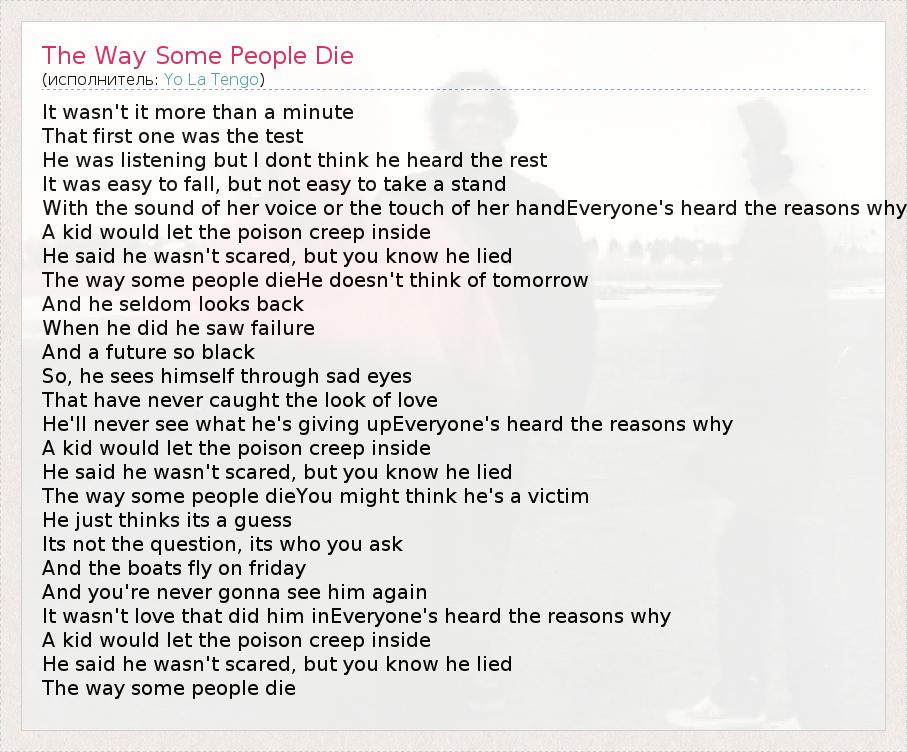 А как ты думаешь, о чем песня "The Way Some People Die" ?