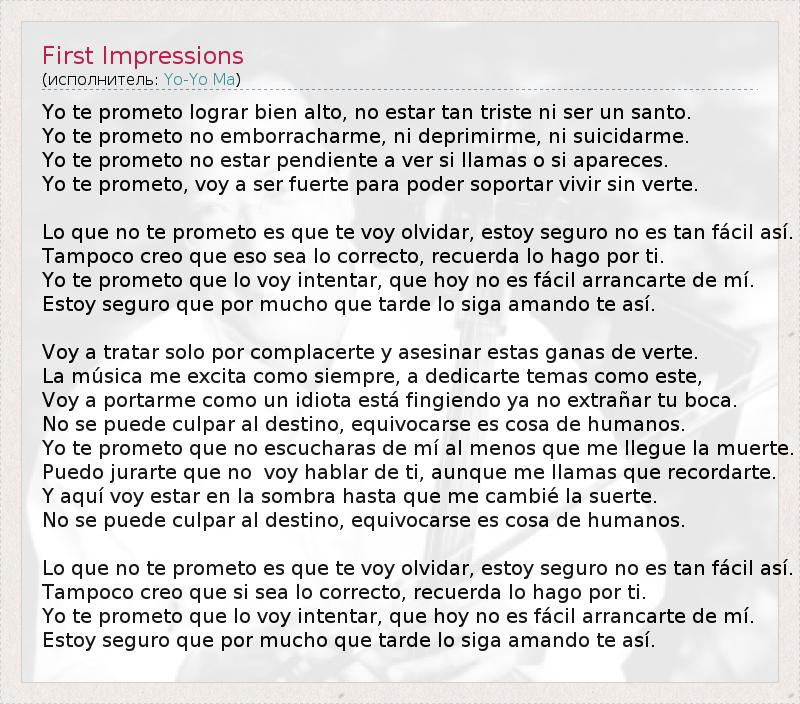 А как ты думаешь, о чем песня "First Impressions" ?