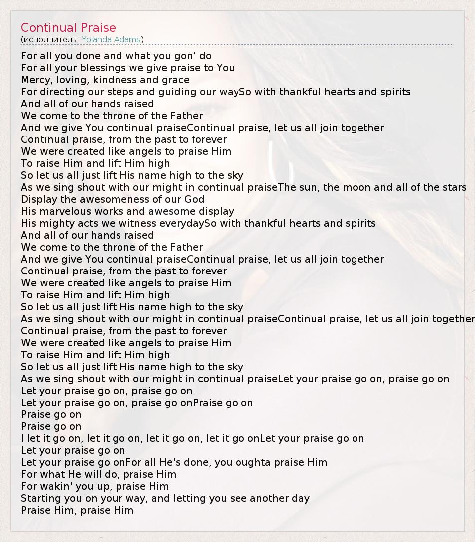 А как ты думаешь, о чем песня "Continual Praise" ?