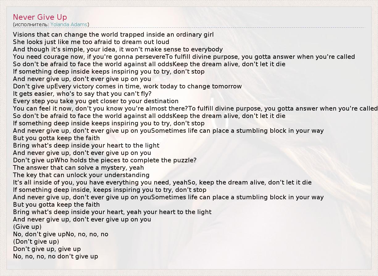 А как ты думаешь, о чем песня "Never Give Up" ?