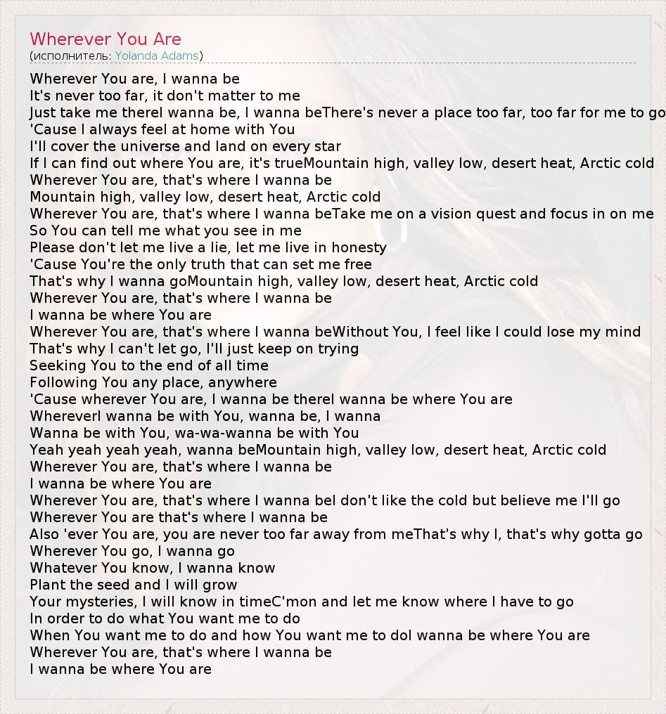 А как ты думаешь, о чем песня "Wherever You Are" ?