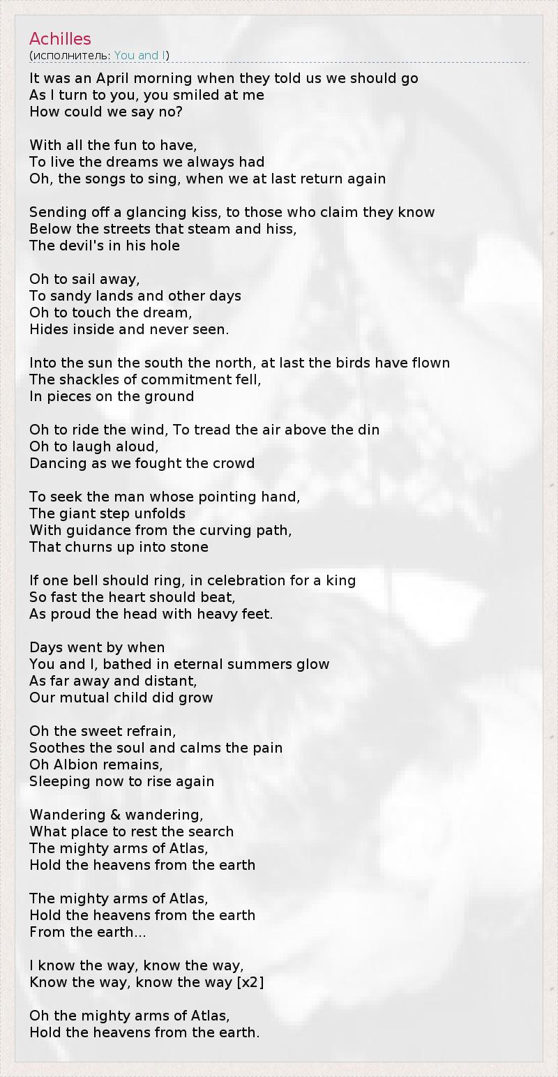 Это интересно:You and I - эмо-группа конца 90-х из Ньюарка, штат Нью-Джерси, США.Образовались в 1997 году из бывших участников Instil и Sky Falls Down. Просуществовав два года, 8 мая 1999 группа даёт свой последний концерт, состоявшийся в подвале Джеффа Рикли.24 июля 2011 в Асбери Парк, Нью-Джерси состоялся реюнион концерт группы. Так же в 2011 переиздаётся LP 12″.После распада... продолжение