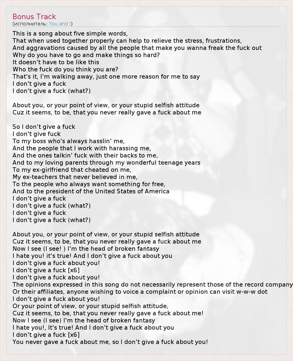 А как ты думаешь, о чем песня "Bonus Track" ?