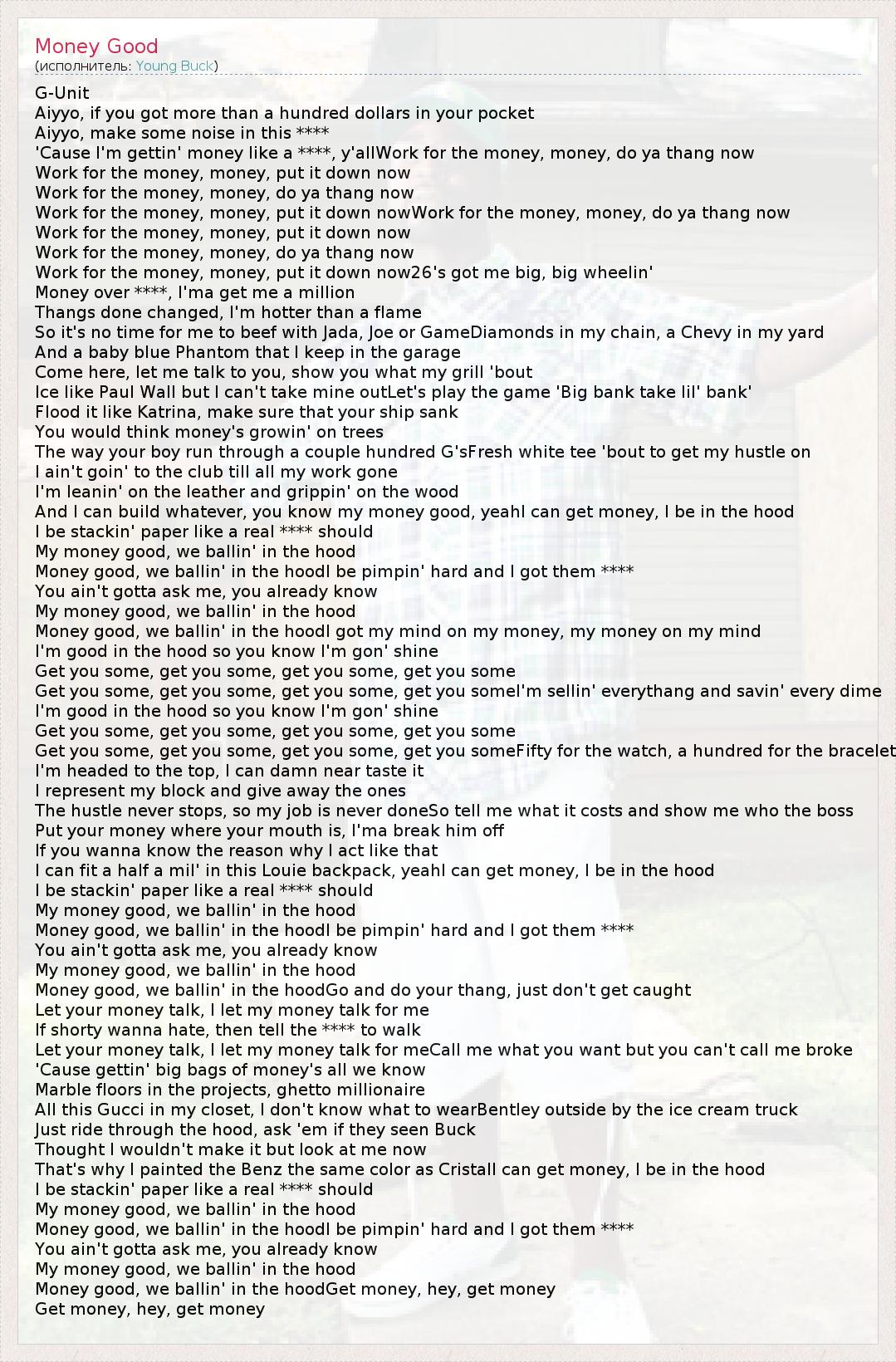 Let your money talk, I let my money talk for meCall me what you want but you can't call me broke