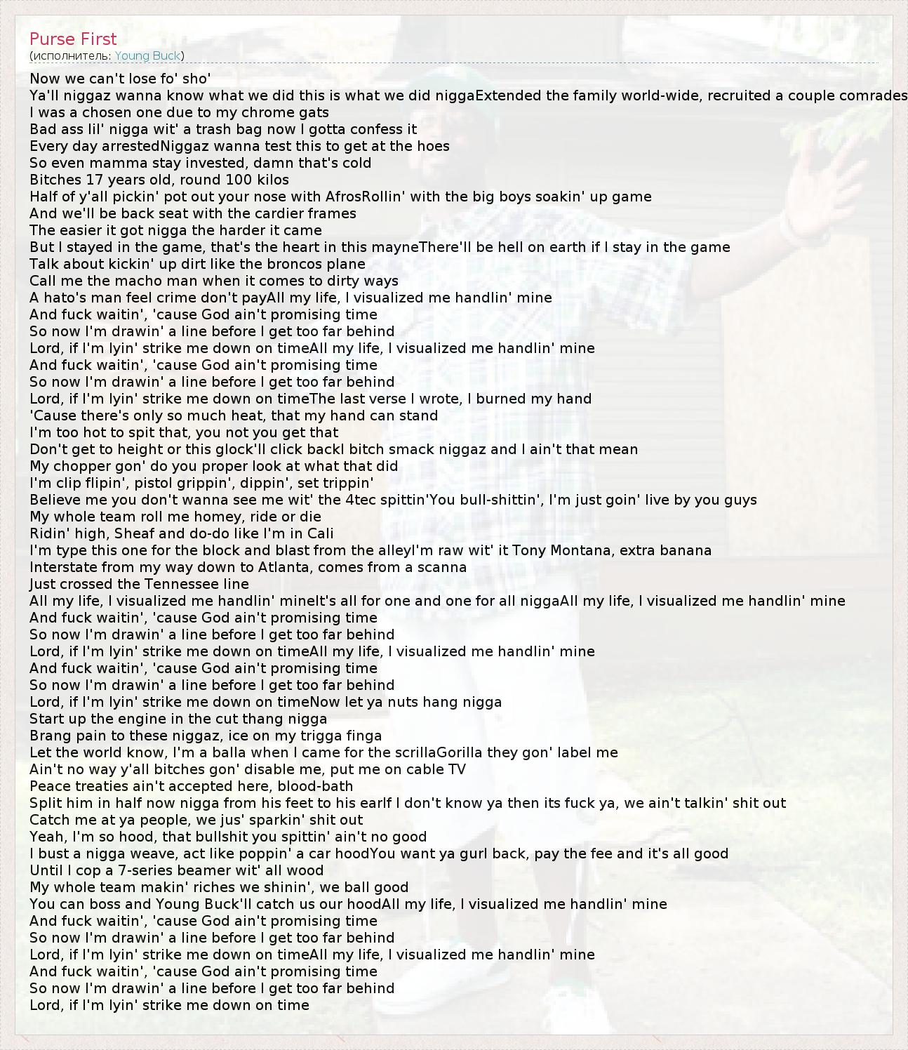А как ты думаешь, о чем песня "Purse First" ?