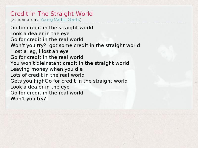 А как ты думаешь, о чем песня "Credit In The Straight World" ?