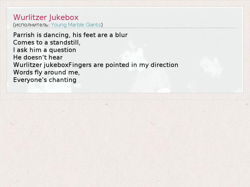 А как ты думаешь, о чем песня "Wurlitzer Jukebox" ?
