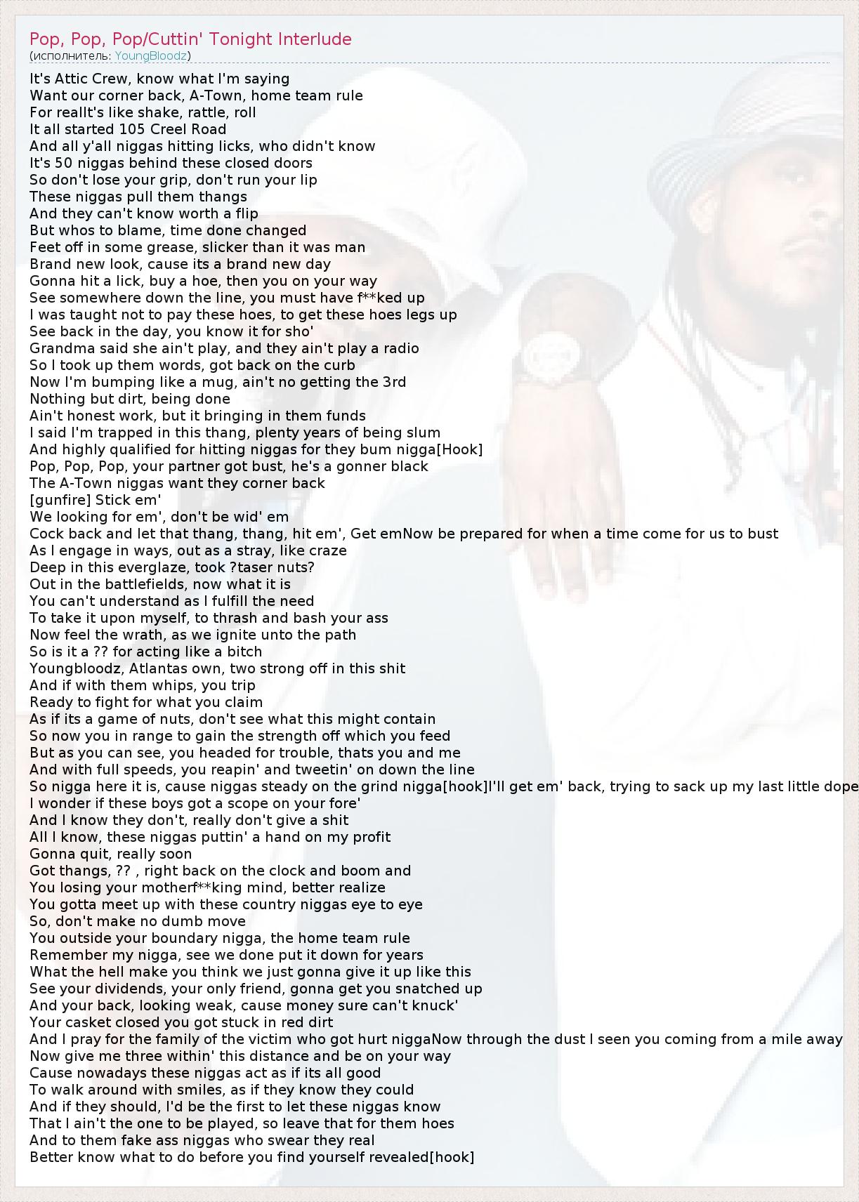 А как ты думаешь, о чем песня "Pop, Pop, Pop/Cuttin' Tonight Interlude" ?