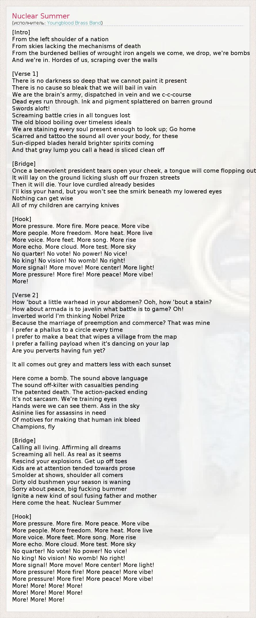 А как ты думаешь, о чем песня "Nuclear Summer" ?