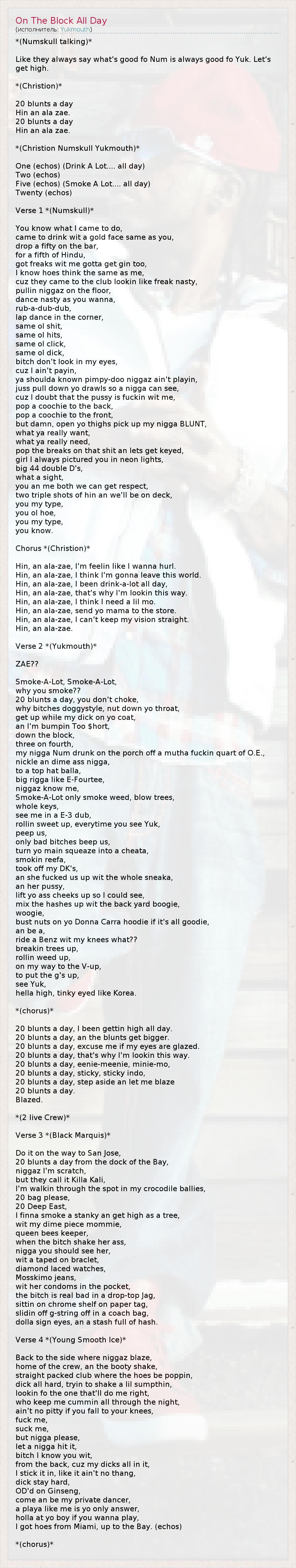 А как ты думаешь, о чем песня "On The Block All Day" ?