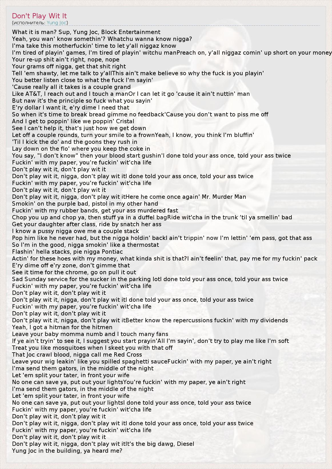 А как ты думаешь, о чем песня "Don't Play Wit It" ?