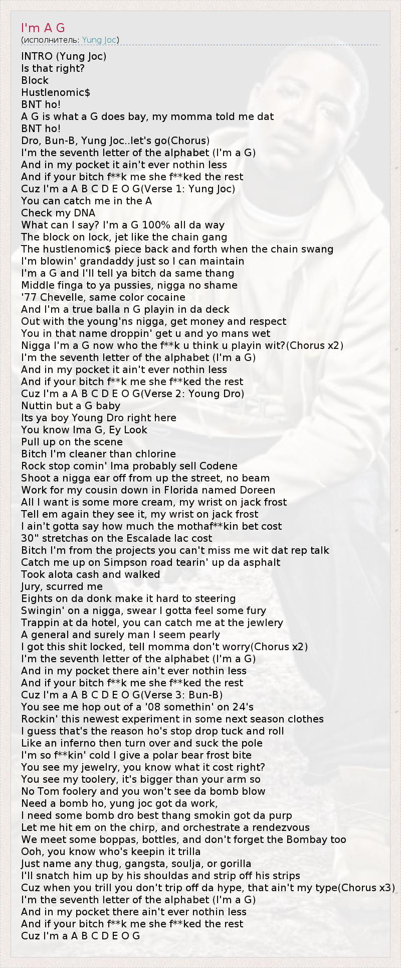 Cuz I'm a A B C D E O G(Verse 1: Yung Joc)