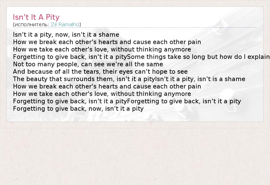 А как ты думаешь, о чем песня "Isn’t It A Pity" ?