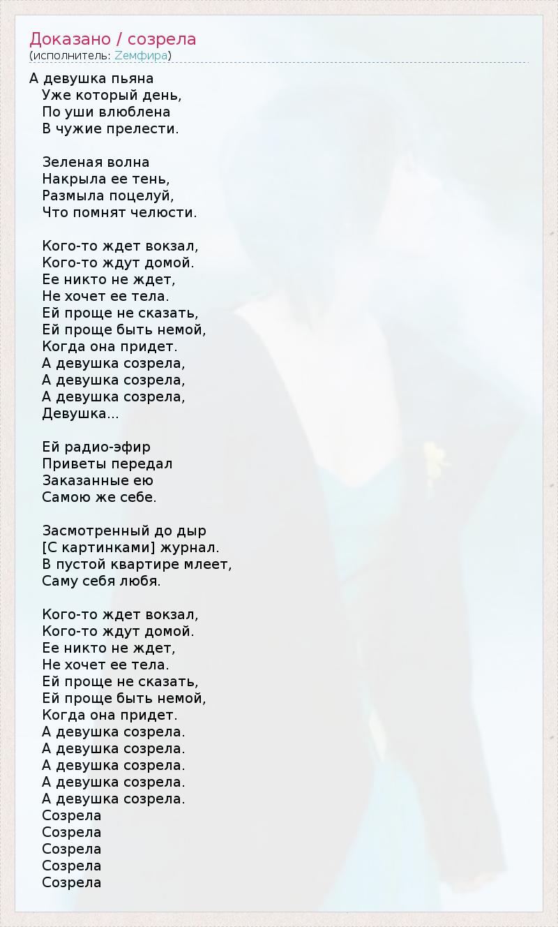 ГлавнаяИсполнителиZемфираДоказано / созрела