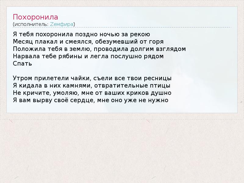 14 сентября 2011 года начал работать официальный сайт фильма «Последняя сказка Риты» (реж. Р. Литвинова), музыку к которому написала Земфира. В трейлере фильма звучит гитарная вариация на тему «Танца с саблями» А. Хачатуряна, а также фрагмент неизвестной песни самой артистки.