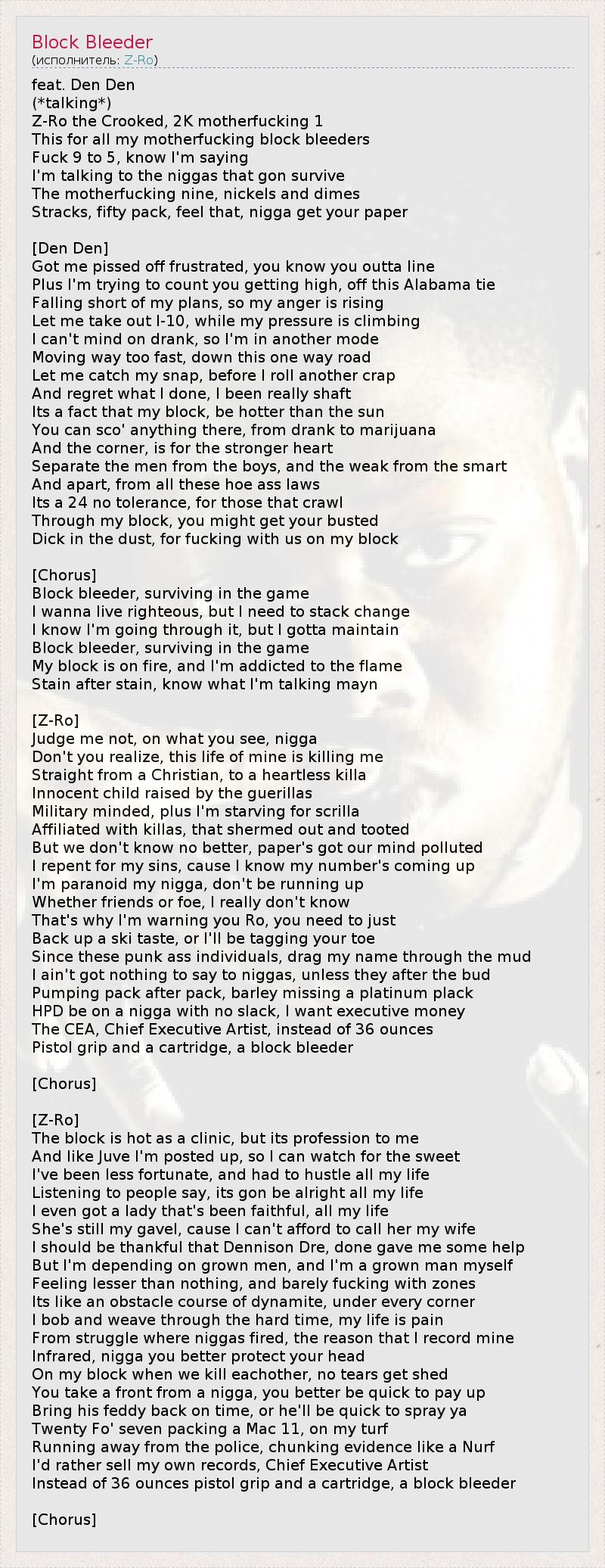 А как ты думаешь, о чем песня "Block Bleeder" ?