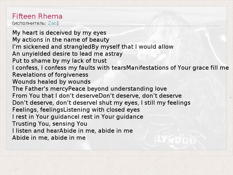 А как ты думаешь, о чем песня "Fifteen Rhema" ?