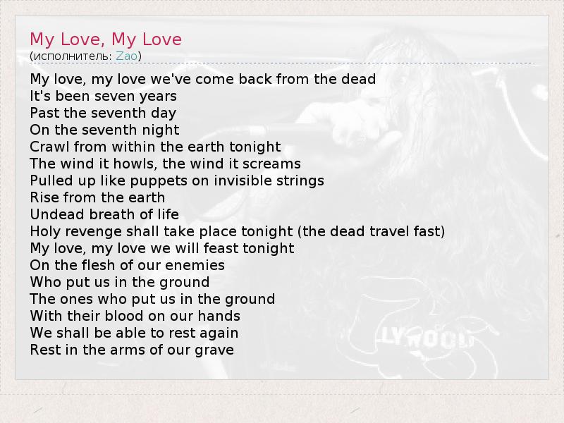 А как ты думаешь, о чем песня "My Love, My Love" ?