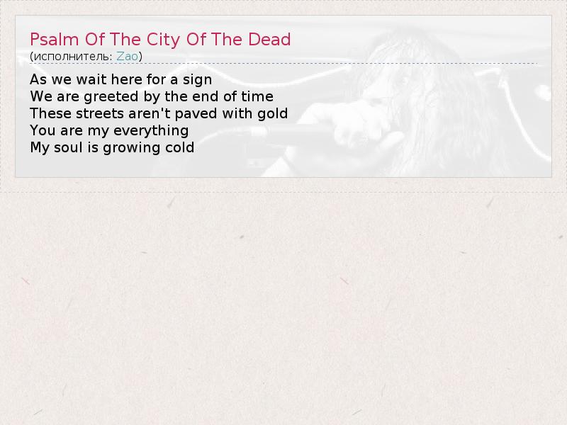 А как ты думаешь, о чем песня "Psalm Of The City Of The Dead" ?