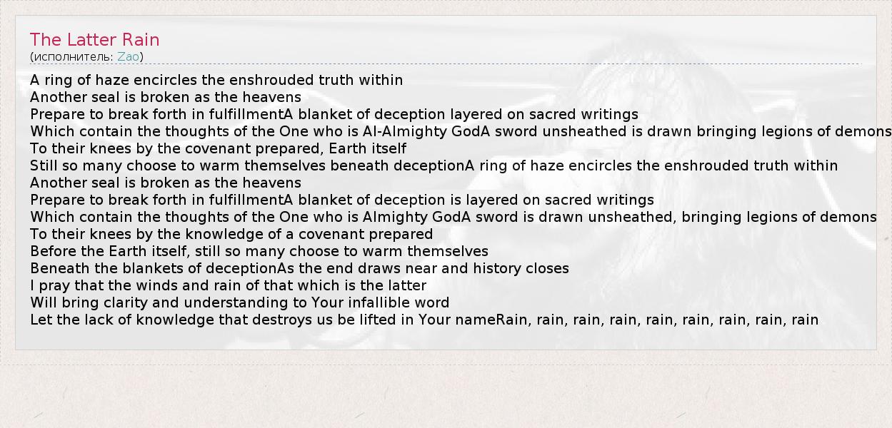А как ты думаешь, о чем песня "The Latter Rain" ?