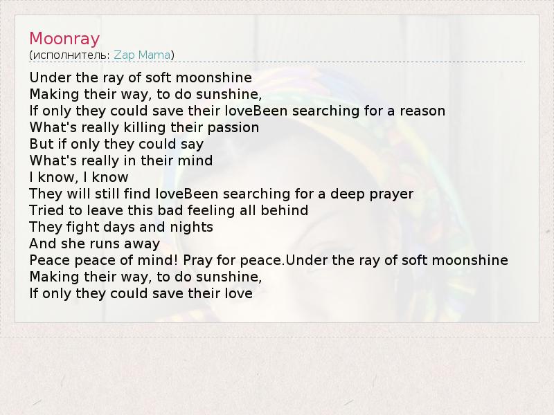 А как ты думаешь, о чем песня "Moonray" ?