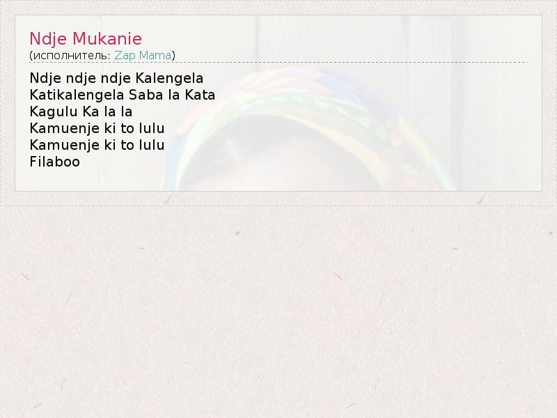 А как ты думаешь, о чем песня "Ndje Mukanie" ?