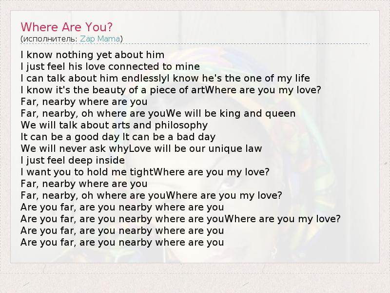 А как ты думаешь, о чем песня "Where Are You?" ?
