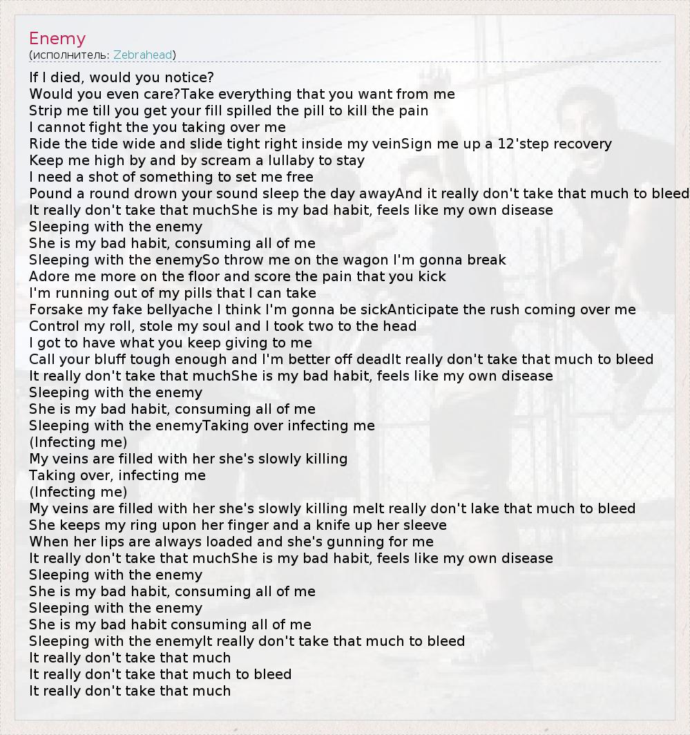 My veins are filled with her she's slowly killing meIt really don't lake that much to bleed