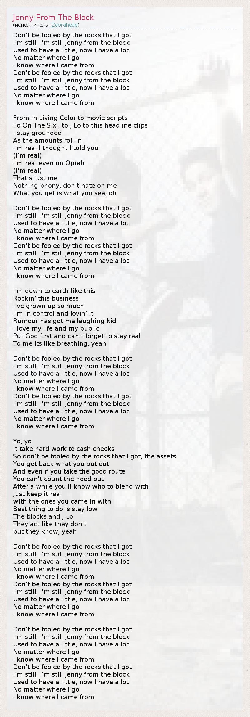 А как ты думаешь, о чем песня "Jenny From The Block" ?