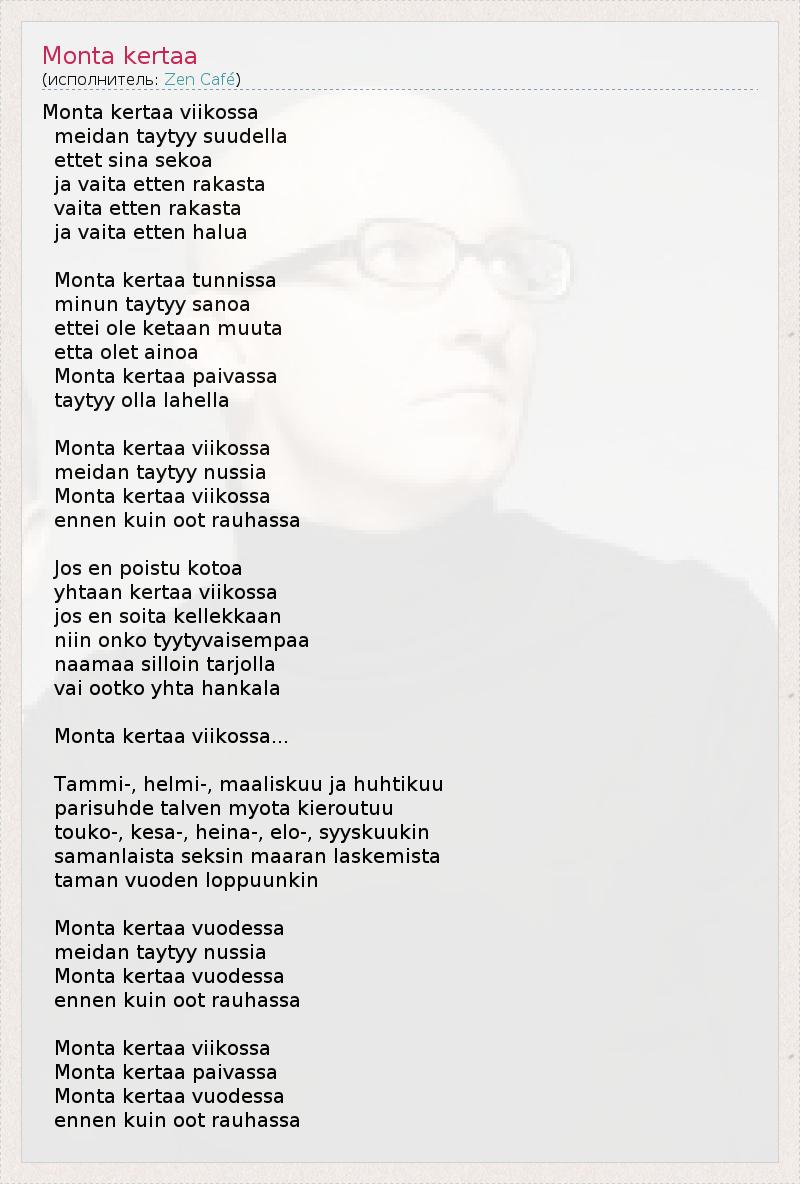 А как ты думаешь, о чем песня "Monta kertaa" ?