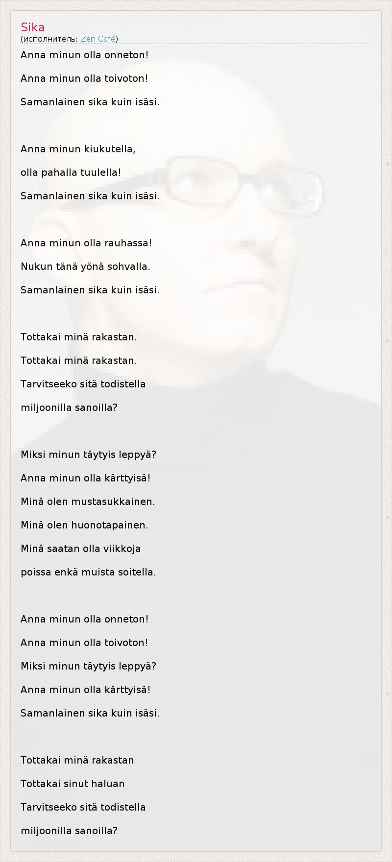 Это интересно:Финская рок-группа Zen Café, основанная в 1992 году в городе Турку, с конца 90-х годов завоевала широкую популярность в родной Финляндии, однако в других странах группа остается малоизвестной и по сей день. Со стороны звукозаписывающих лейблов не было попыток выпуска альбомов Zen Café на экспорт прежде всего по той причине, что группа исполняет свои песни исключительно на финском языке.Название... продолжение
