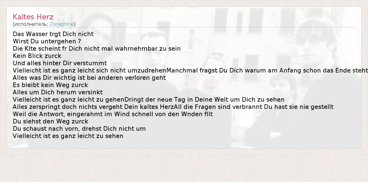 А как ты думаешь, о чем песня "Kaltes Herz" ?