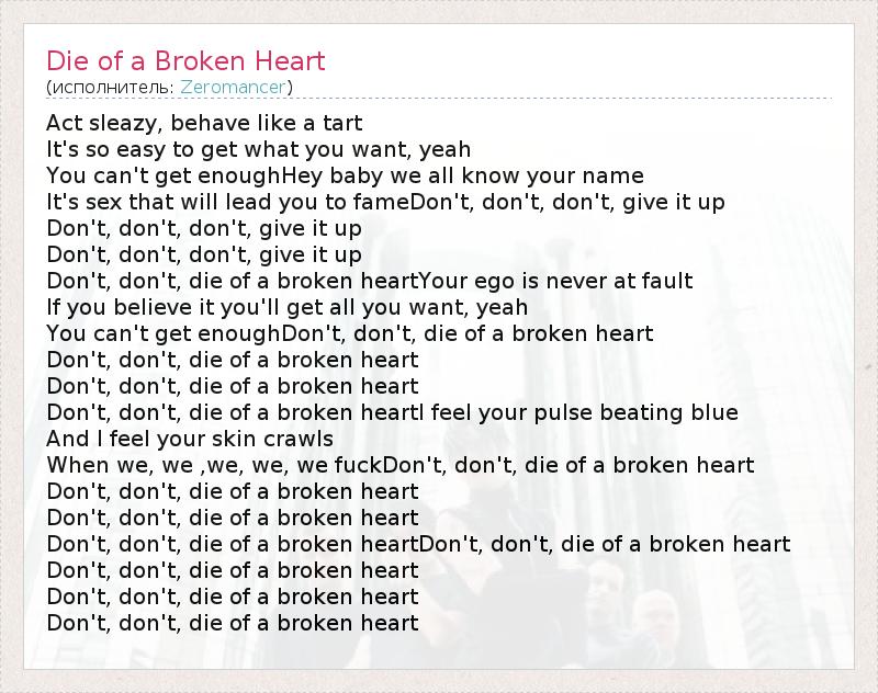 А как ты думаешь, о чем песня "Die of a Broken Heart" ?