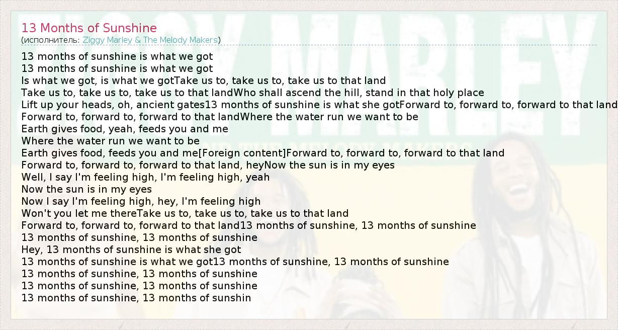 А как ты думаешь, о чем песня "13 Months of Sunshine" ?