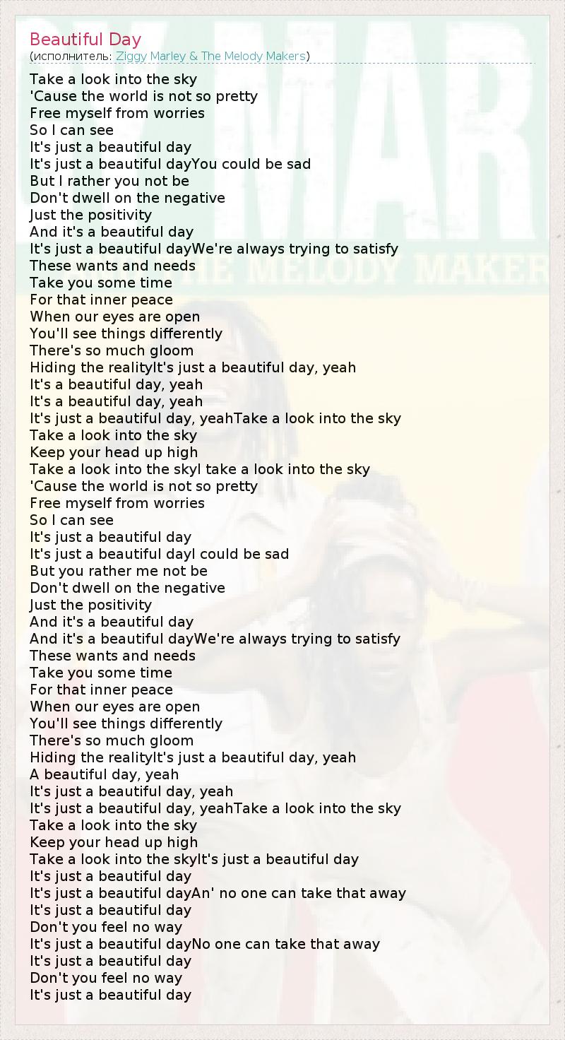 А как ты думаешь, о чем песня "Beautiful Day" ?