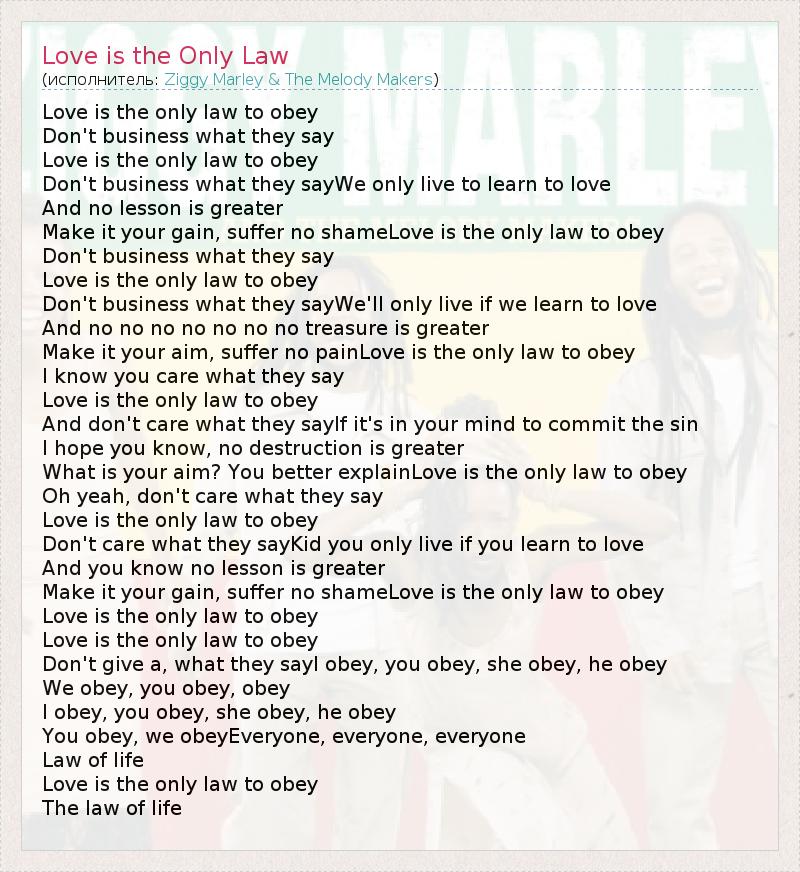 А как ты думаешь, о чем песня "Love is the Only Law" ?