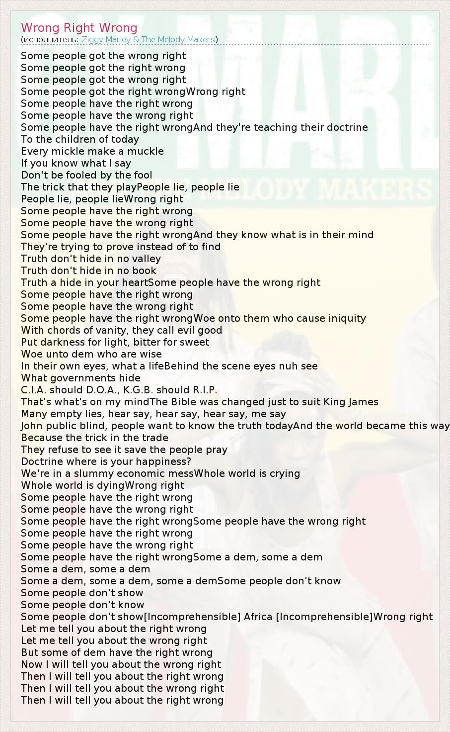 А как ты думаешь, о чем песня "Wrong Right Wrong" ?